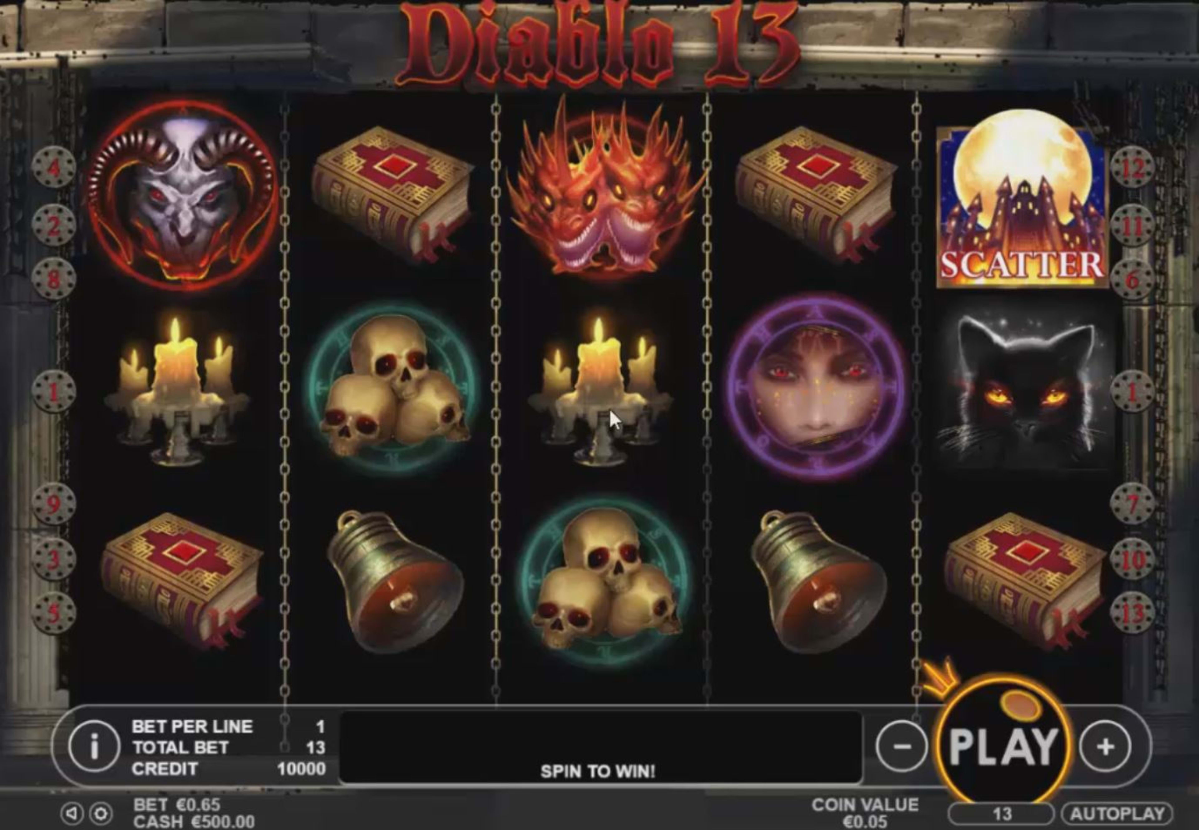 Diablo 13 memiliki tampilan gothic dan tema yang terinspirasi setan dan neraka. Anda mendapatkan tema mesin slot yang cukup sederhana, dengan hal-hal yang Anda anggap akan muncul di gulungan. Daerah sekitarnya terbuat dari batu, dengan rantai logam tergantung dari samping. Gaya desainnya tidak bagus, setidaknya untuk saya, tapi itu tidak akan menjadi masalah juga, jika Anda menyukai segala hal lain tentang permainan. Ini hanya jenis permainan yang saya anggap bijak rata-rata. Jika Anda melihat simbol yang diberikan gulungan, Anda mulai dengan logo, penyihir, dan kastil untuk fitur-fiturnya, dan kemudian kami memiliki pelanggan tetap yang memberi kami lilin, lonceng, buku, kucing hitam, tengkorak, mata merah wanita, setan dan iblis.